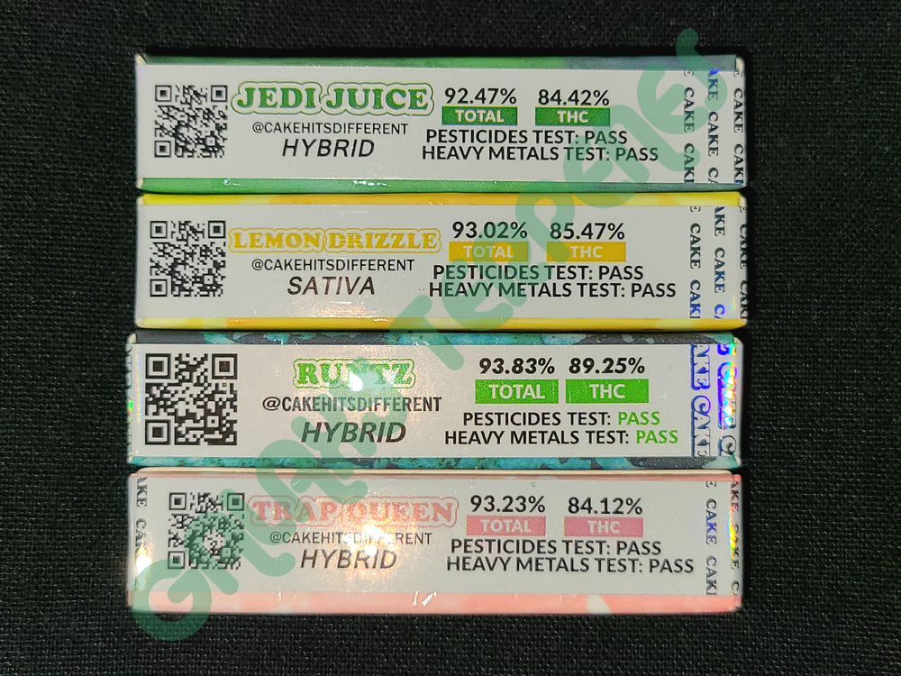 | Flavors | JEDI JUICE, LEMON DRIZZLE, RUNTZ, TRAP QUEEN, BUDDHA BLISS |